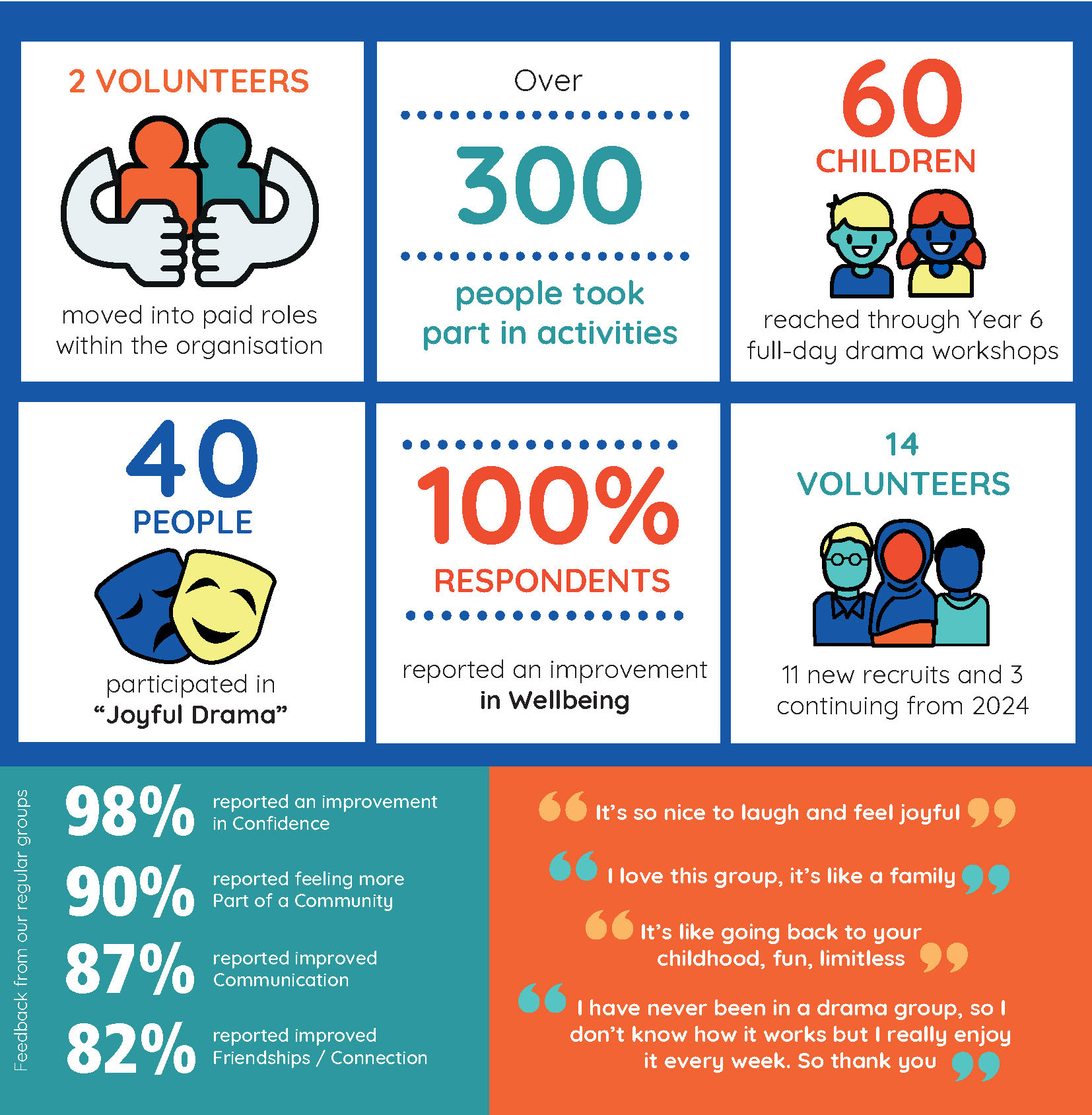 82% reported improved or new friendships and connections.